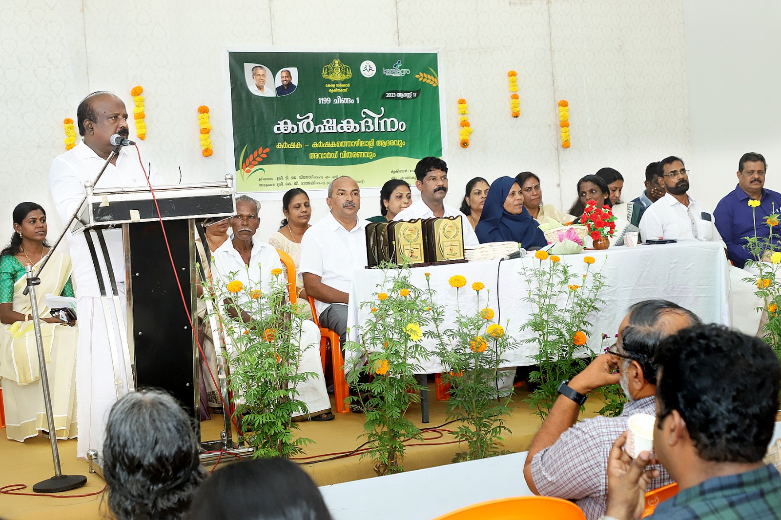 ചേരാനെല്ലൂർ ഗ്രാമ പഞ്ചായത്തിന്റെയും കൃഷിഭവന്റെയും സംയുക്തഭിമുഖ്യത്തിൽ ഈ വർഷത്തെ കർഷക ദിനം ഓഗസ്റ്റ് 17 വ്യാഴാഴ്ച വിഷ്ണു പുരം പാസ്ക്കൽ മെമ്മോറിയൽ ഹാളിൽ വെച്ച് ഗ്രാമ പഞ്ചായത്ത് പ്രസിഡന്റ് കെ ജി രാജേഷ് അവർകളുടെ അധ്യക്ഷതയിൽ എം എൽ എ ടി ജെ വിനോദ് ഉദ്ഘാടനം നിർവഹിച്ചു. കൃഷി ഓഫീസർ ഷൈജ കെ എസ് സ്വാഗതം ആശംസിച്ചു. പ്രസ്തുത ചടങ്ങിൽ വൈസ് പ്രസിഡൻ്റ് ആരിഫ മുഹമ്മദ്, വികസന കാര്യ സ്റ്റാൻ്റിംഗ് കമ്മിറ്റി ചെയർമാൻ ഷിമ്മി ഫ്രാൻസിസ്, ക്ഷേമകാര്യ സ്റ്റാഡിംഗ് കമ്മിറ്റി ചെയർപേഴ്സൺ ഷീബ കെ പി, ആരോഗ്യ വിദ്യാഭ്യാസ സ്റ്റാൻഡിങ് കമ്മറ്റി ചെയർമാൻ സ്റെൻസ്ലാവോസ്, ഇടപ്പള്ളി ബ്ലോക്ക് മെംബർമരായ ലിസ്സി വാരിയത്ത്, സ്മിത സ്റ്റാൻലിൻ, മെമ്പർമാരായ രമ്യ തങ്കച്ചൻ, റിനി ഷോബി, വി, ബെന്നി ഫ്രാൻസിസ്, മരിയ ലില്ലി, റോസി ഡെറിസ്, ഭരതൻ ടി അർ, മിനി വർഗീസ്, ജെയിംസ് കെ.ജെ തുടങ്ങിയവരും കാർഷിക വികസന സമിതി അംഗം ജോർജ് പി ജെ യും ആശംസകൾ അർപ്പിച്ചു.